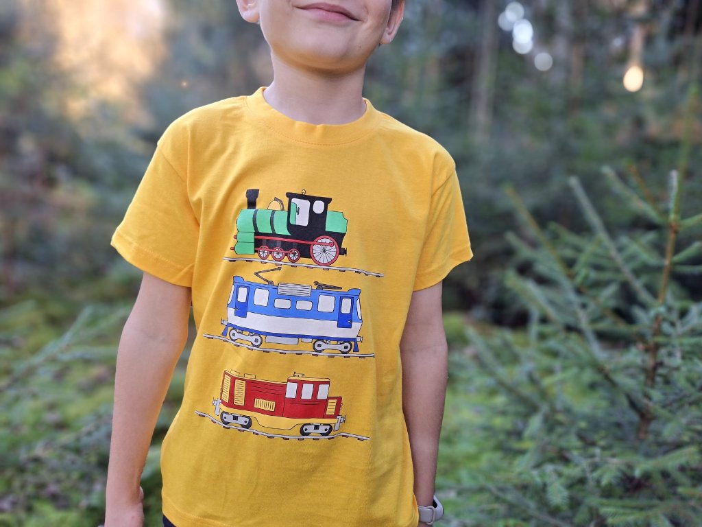 Pánské a dámské tričko s vlakem - tričko se třemi mašinkami. Buďte sladění celá rodina! :-)