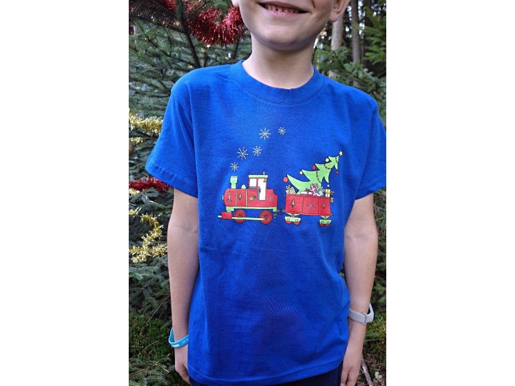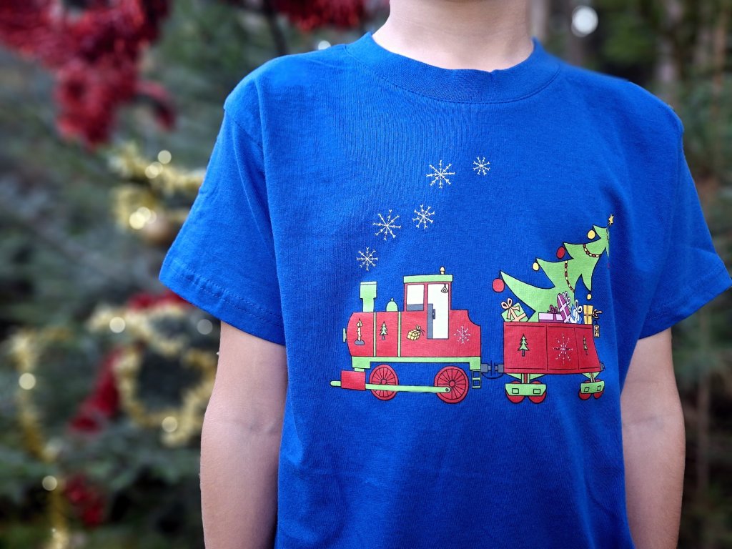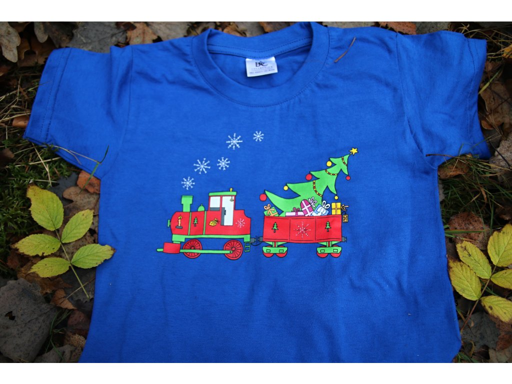 Milují Vaše děti mašinky? V tričku s motivem vánočního vláčku budou u stromečku jen zářit.