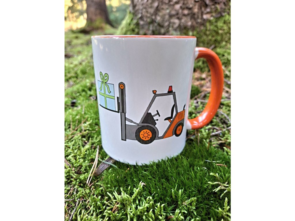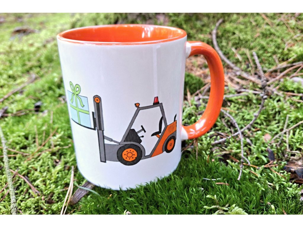 Vaše děti si mohou svoje oblíbené kakao nebo čajík vychutnávat v krásném vánočním hrnku s vysokozdvižným vozíkem. Vánoční vozík s dárkem jsme namalovali pro všechny malé techniky.
