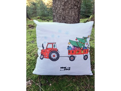 Originální povlak na polštář s vánočním traktorem, stromečkem a dárky pro všechny malé milovníky traktorů!